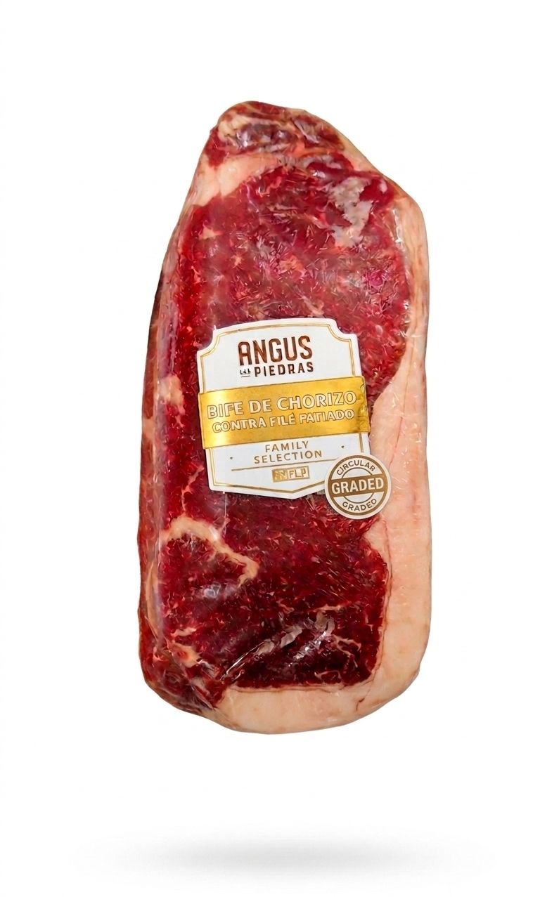Corte Angus selecionado, com excelente marmoreio, maciez e sabor marcante. Proveniente de animais criados a céu aberto e alimentados com grãos por no mínimo 100 dias. Embalado a vácuo e sem adição de hormônios, garantindo qualidade e suculência em cada preparo.